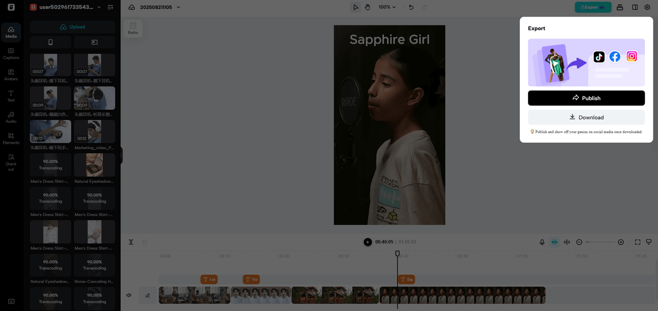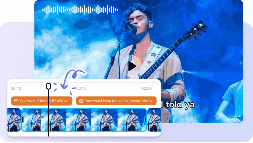 Click on Auto Lyrics in the Captions panel. The AI produces best time words in sync with your sound. Then you are able to edit fonts, colors, and animations to your creative vision. Once you are satisfied with the style, press the button Export to obtain a dynamic and visually unique lyric video.