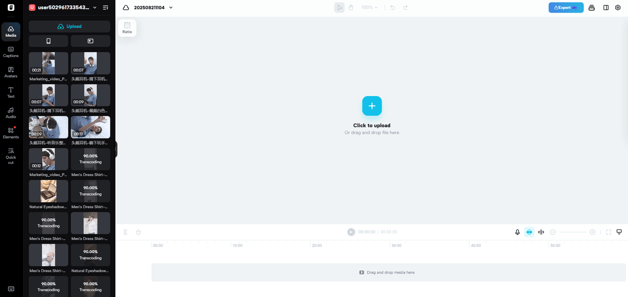 Click “Upload” or drag and drop your chosen video file into the timeline. The upload works smoothly whether you’re using local storage or cloud media. Preview it to check clarity and pacing before you add lyric visuals.