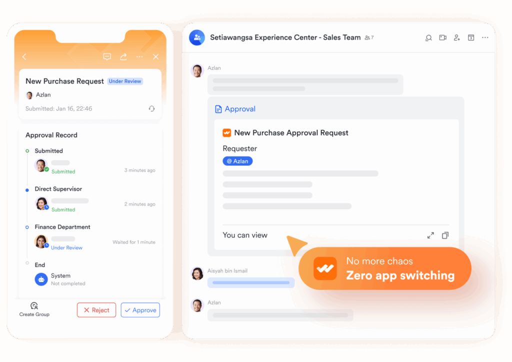 Processes represent a part of organizational knowledge, including how approvals work, who makes what decisions, and what the rules are. Lark Approval captures and enforces this knowledge by standardizing and structuring processes. This way, employees will not rely on who can remember what or a stale playbook, they will submit standardized requests and follow sign-off paths to ensure that decisions are both efficient and accountable. Because Approval operates within an automated workflow, process knowledge is further embedded into the routine of an organization.
